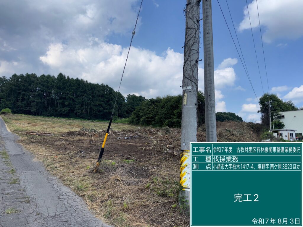 公共事業 令和7年度古牧財産区有林暖衝帯整備業務委託 完工しました!