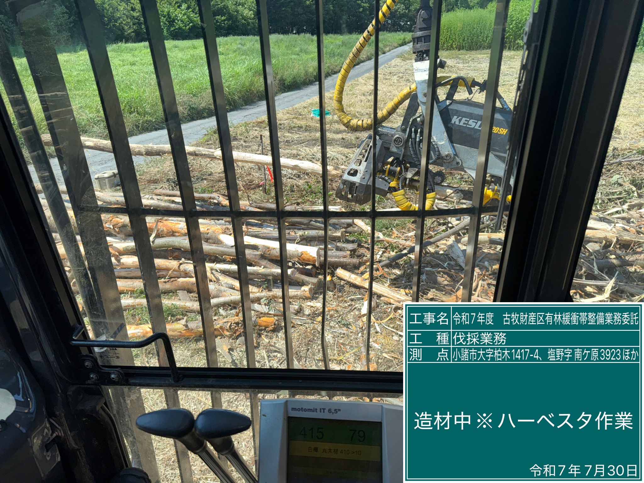 自分は重機担当で、従業員さんたちは各々、伐倒係、枝払い造材係で分けてやりました!