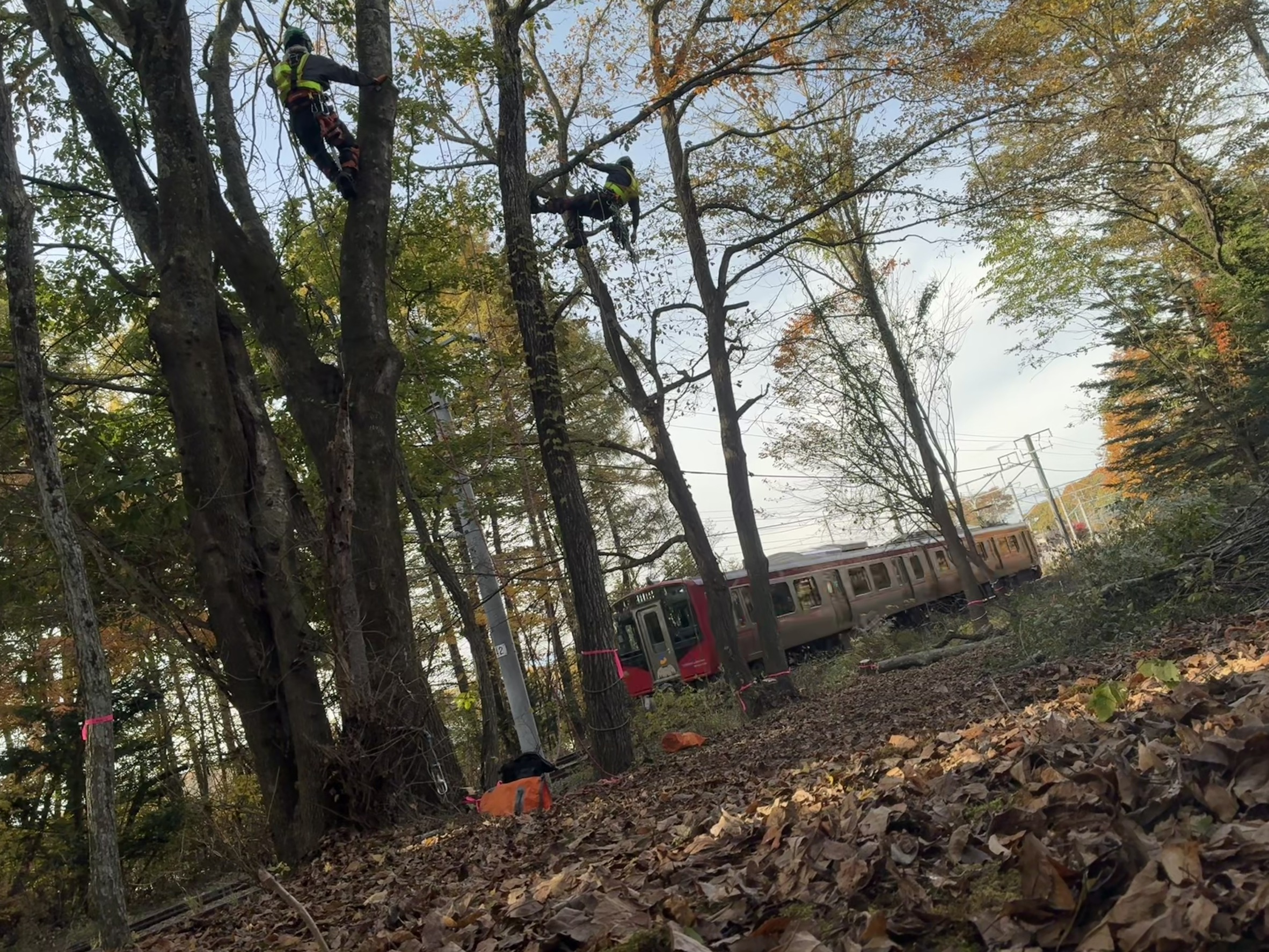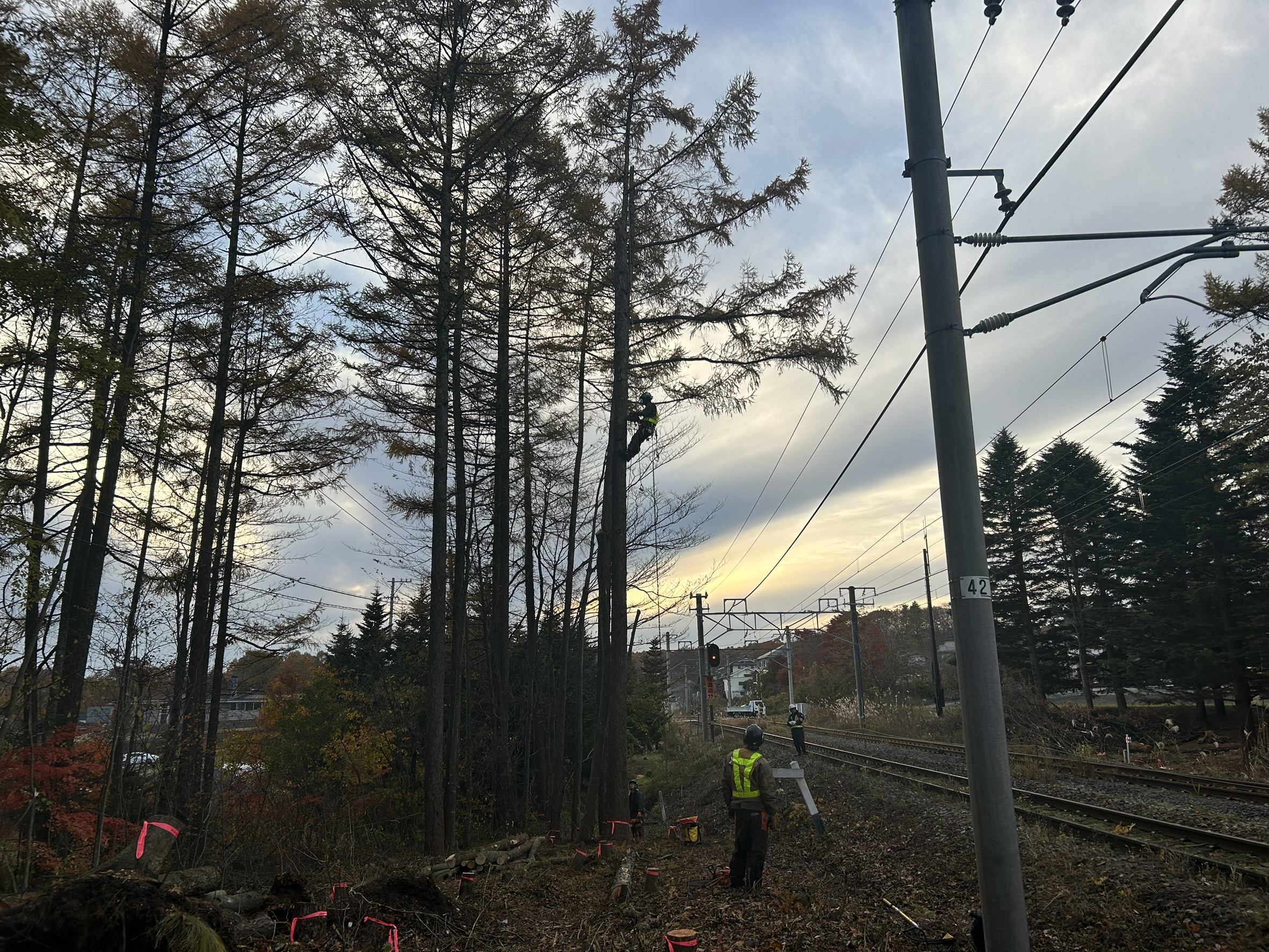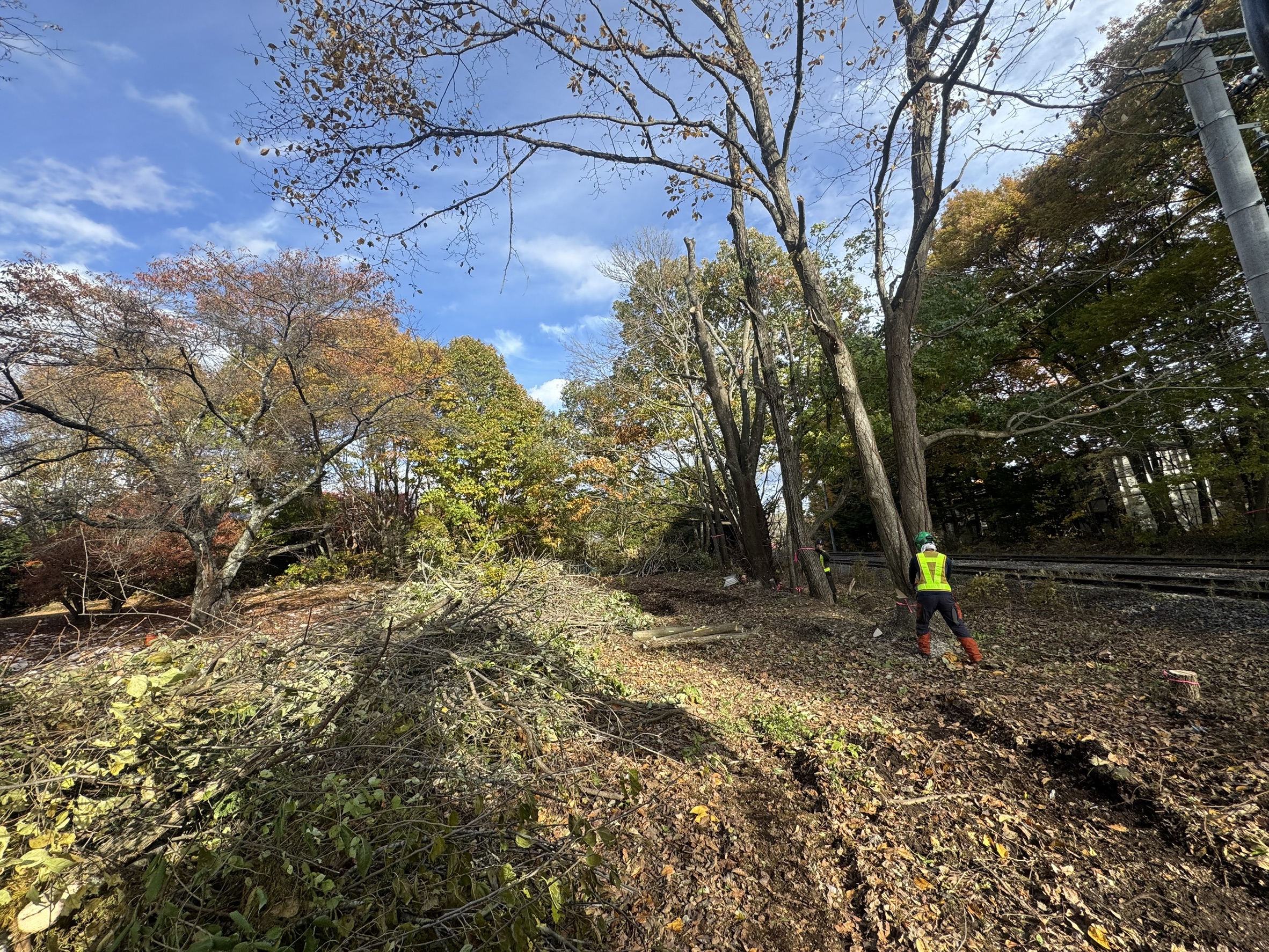 株式会社 小宮山土木 様 のお仕事で、しなの鉄道管内、信濃追分駅付近の特殊伐採搬出業務 完了致しました!
