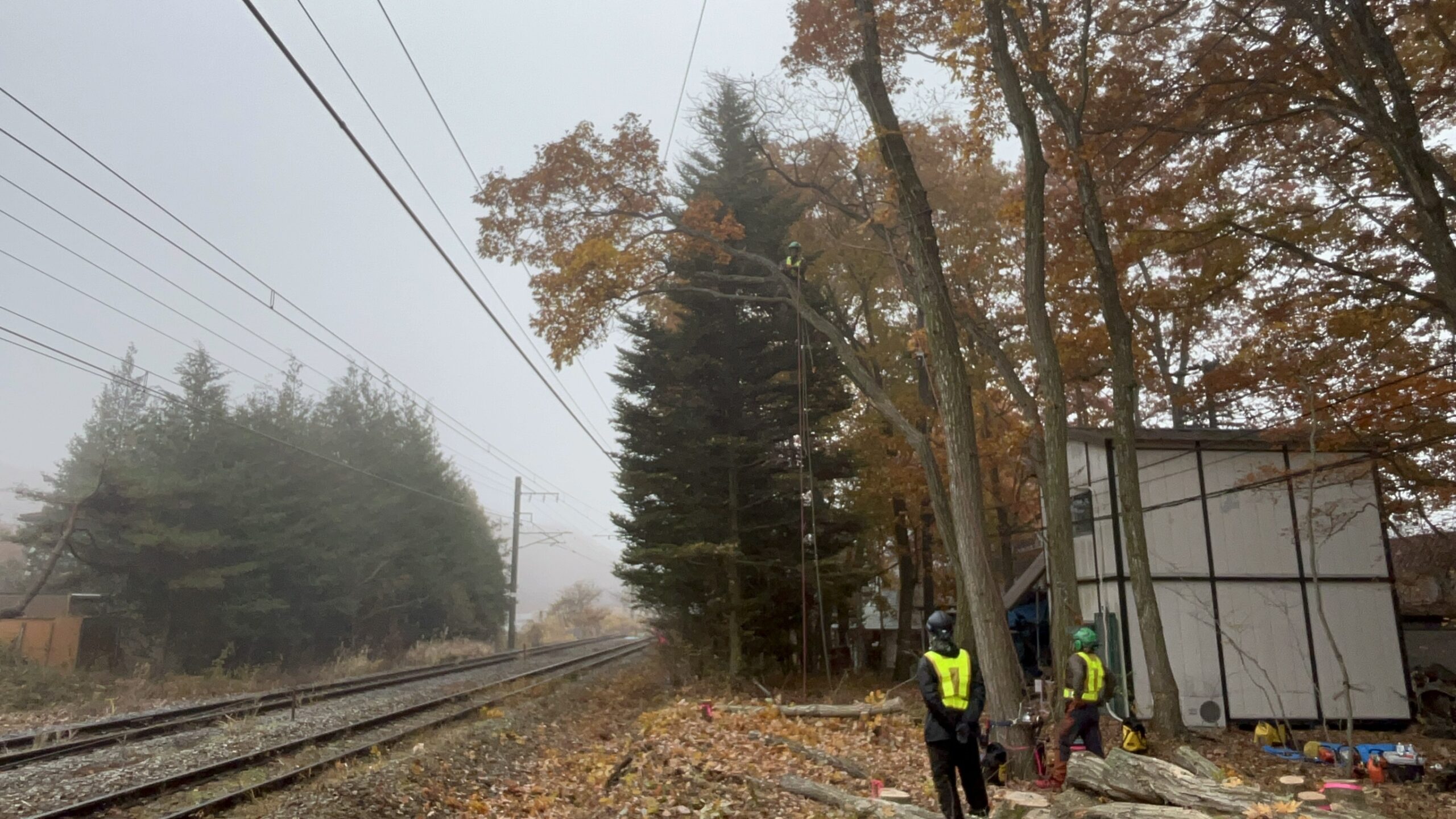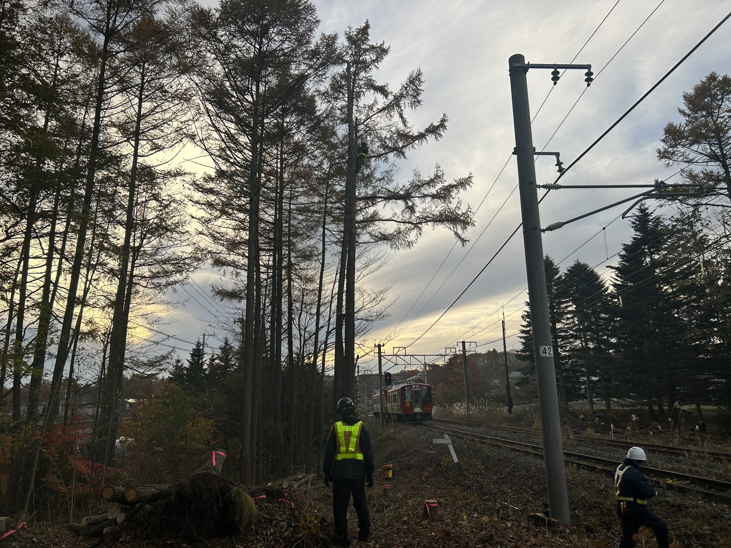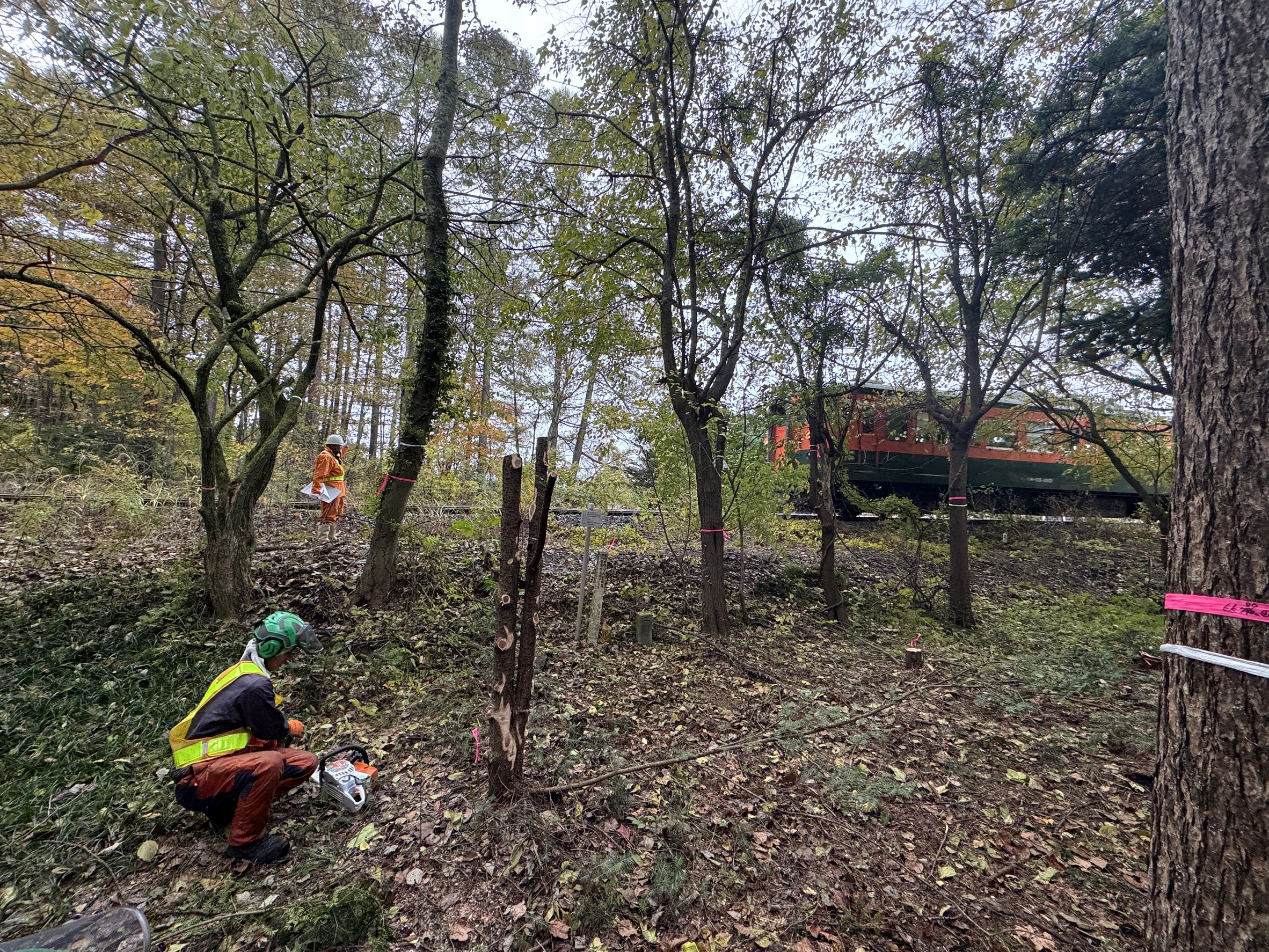 株式会社 小宮山土木 様 のお仕事で、しなの鉄道管内、信濃追分駅付近の特殊伐採搬出業務 完了致しました!