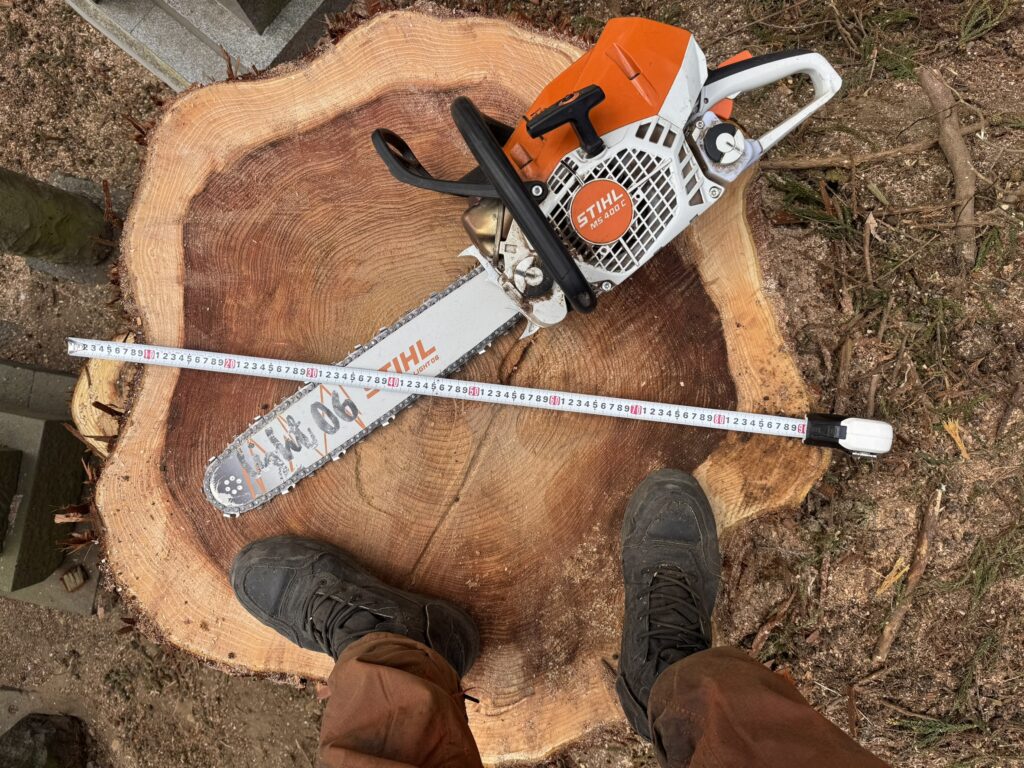 御墓の中に生えていた木なので慎重にフルリギング、なおかつ幹は材として出せるように作業させていただきました!